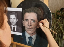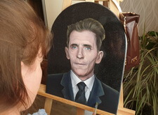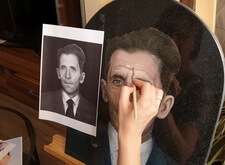 Затем наступил этап детальной прорисовки: первым делом была изображена одежда усопшего, затем – его волосы, с лишь после этого было очерчено лицо. По ходу работы изображение приобретало всё большее сходство с оригинальной фотографией.