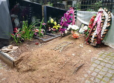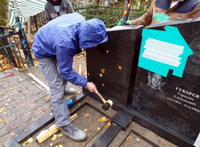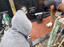 В первую очередь мы начали с подготовки надёжного основания для будущего памятника. Для этого мы раскопали необходимую часть места захоронения.