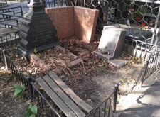 Старая могила, которая достаточно длительный период времени были без присмотра. Резкий контраст хорошего и дорого памятника и сильно отличающиеся по стилю пристройки более современных памятников. Нужно было убраться и перенести надпись с небольшого памятника на общую плиту.